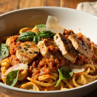 This chicken and gnocchi brings a little polished comfort to the table without being fussy, its creamy sauce and soft gnocchi pair beautifully with crisp sage and a scattering of Parmesan, and it is forgiving enough to adapt to leftovers or dietary tweaks, trust the simple steps, make it your own with a lemon squeeze or extra mushrooms, and enjoy the slow, satisfying feeling of a bowl that looks as good as it tastes.
